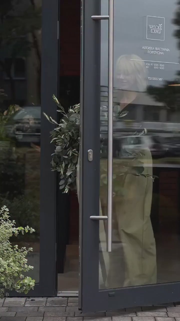 Wianek z eukaliptusa i delikatnych gałązek oliwnych.